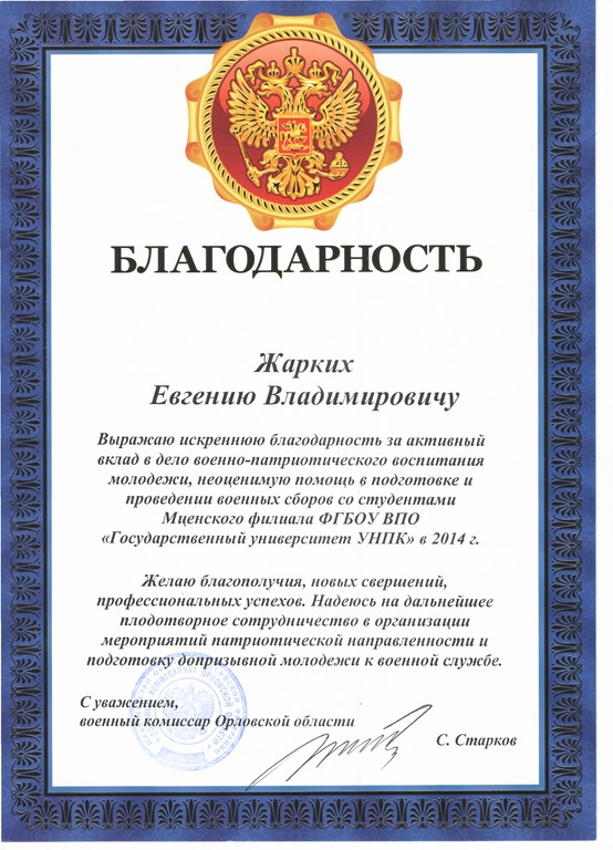 Благодарственное письмо!