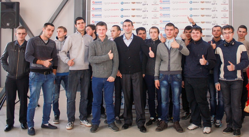 6 декабря 2014г. студенты первого курса кафедры «Автомобили и автомобильное хозяйство» вместе с преподавателем спецдисциплин Даниловым В.А. приняли участие в Дне открытых дверей Автоцентра «Шанс», официального дилерского центра автомобилей Chery, Lifan, Haima, Geely в г. Орел.