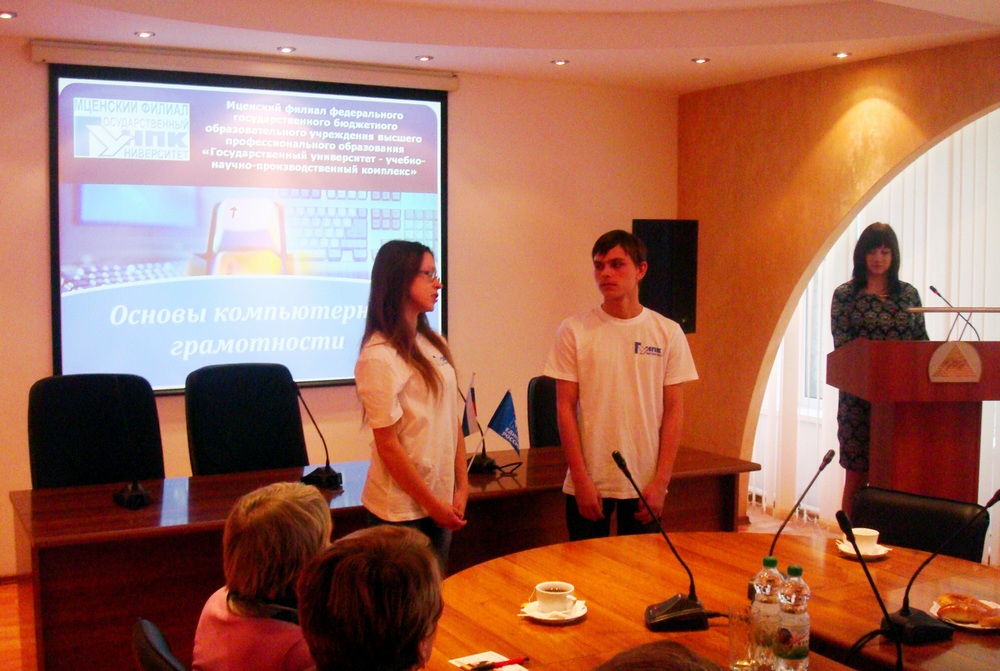 8 декабря 2014 г. в Мценском филиале Госуниверситета-УНПК состоялось открытие социально-образовательного проекта «Основы компьютерной грамотности» для людей пенсионного возраста, который проводится совместно с Отделением общероссийской общественной организации «Союз пенсионеров России», Администрацией г. Мценска и Управлением Пенсионного фонда России в г.Мценск и Мценском районе. Данный проект позволит слушателям старшего поколения включиться в ритм современного века информационных технологий, так как компьютер уже давно стал неотъемлемой частью нашей жизни.