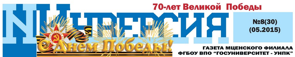 9 Мая — особая дата в истории России. В 2015 году исполнится 70 лет со дня Великой Победы в Великой Отечественной войне.. Этой знаменательной дате посвящен новый номер газеты Мценского филиала Госуниверситета – УНПК «Инверсия». Подробнее…
