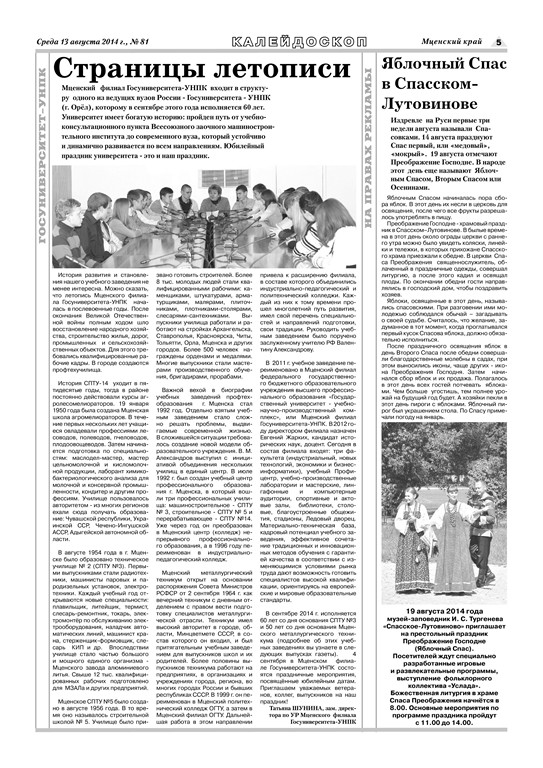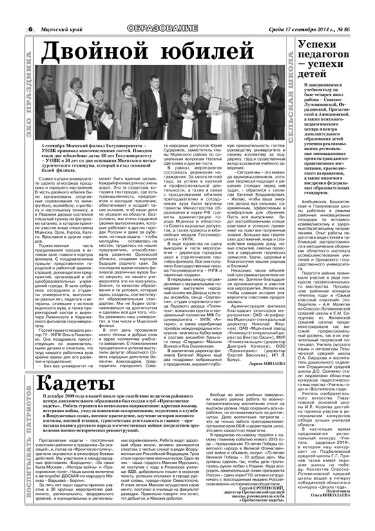 4 сентября Мценский филиал Госуниверситета – УНПК принимал многочисленных гостей. Поводом стали две юбилейные даты: 60 лет Госуниверситету – УНПК и 50 лет со дня основания Мценского металлургического техникума, который и стал основной базой филиал.