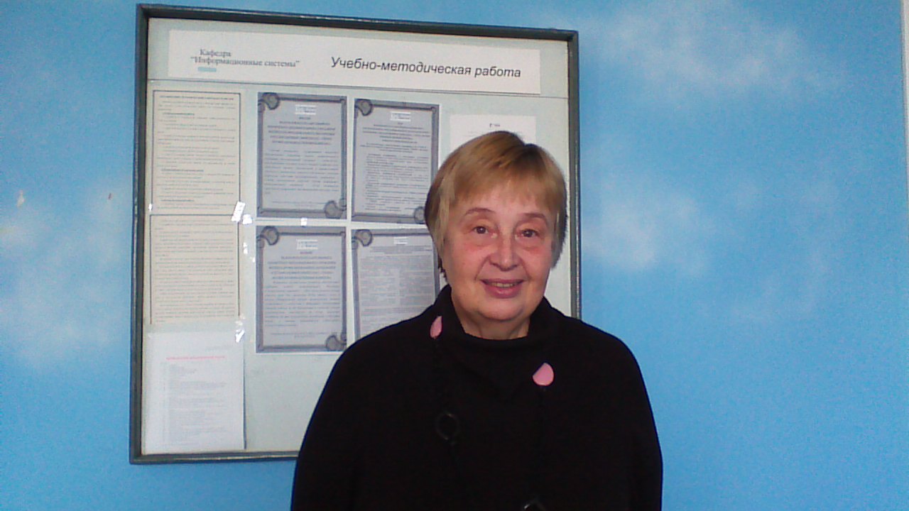 Дополнительная информация: В 1980 году окончила Московский институт управления по специальности "Автоматизированные системы управления в машиностроении" (квалификация "инженер-экономист"). В 2013 году присвоено учёное звание доцента по кафедре информационных систем. Общий стаж работы составляет 45 лет, в том числе стаж педагогической работы в высших учебных заведениях 33 лет. Читает лекционные курсы по дисциплинам: «Основы алгоритмизации и программирование», «Разработка профессиональных приложений». Регулярно принимает участие в конференциях различного уровня, включая международные, среди которых за последние годы: Международная научно-техническая конференция «Информационные технологии в науке, образовании и производстве» (г. Орел, 2010, 2012, 2014 г.г.); Международная научно-техническая Интернет-конференция «Информационные системы и технологии» ( г. Орел, 2011 г.).