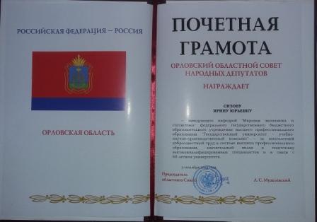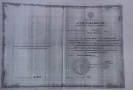 - Удостоверение о повышении квалификации № 571801594256 от 27.10.2017 "Охрана труда" 40 час. ОГУ имени И.С. Тургенева