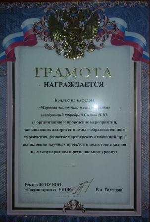 профессор кафедры экономики, финансов и бухгалтерского учета