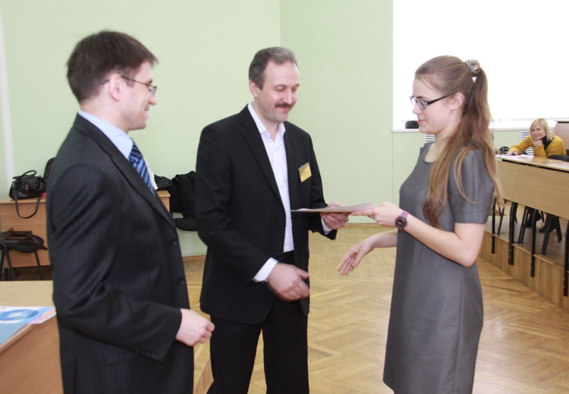 Диплом вручается победителю отборочного этапа олимпиады Святославу Кудряшову (лицей №1)