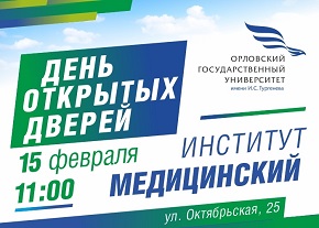 Приглашаем на День открытых дверей Медицинского института ОГУ имени И.С. Тургенева 06.02.2026 Подробнее АбитуриентамОбъявления