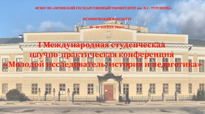 29-30 апреля 2021 г. на базе исторического факультета Орловского государственного университета имени И.С. Тургенева состоялась I Международная студенческая научно-практическая конференция «Молодой исследователь: история и педагогика».