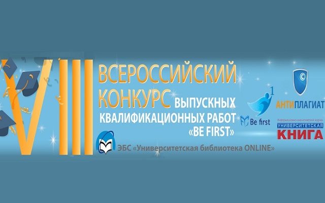 12 декабря 2023 г. в Москве состоялась церемония награждения победителей VIII Всероссийского конкурса выпускных квалификационных работ «Be First!». Конкурс ежегодно проводится издательством «Директ-Медиа» совместно с ЭБС «Университетская библиотека онлайн», журналом «Университетская книга» и компанией «Антиплагиат».