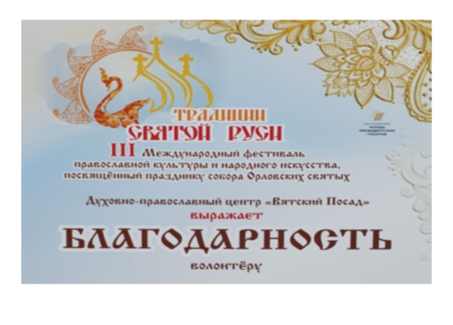 25 мая 2022 г. в Ресурсном центре добровольчества ОГУ им. И. С. Тургенева состоялось награждение студентов-теологов, в качестве волонтеров принимавших участие в V Международном фестивале православной культуры и народного искусства «Традиции святой Руси» в Духовно-православном центре «Вятский посад».