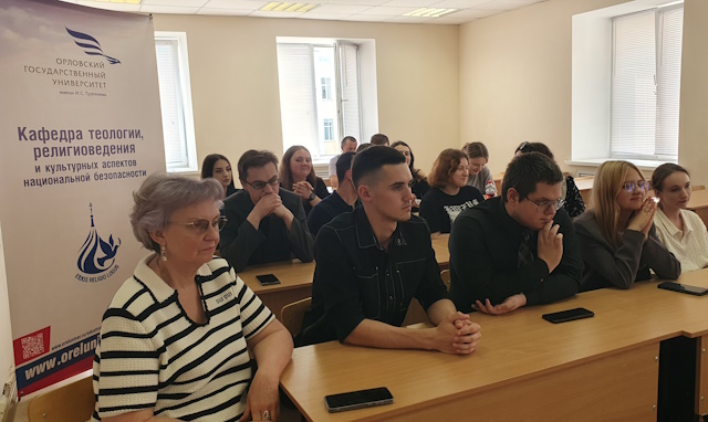 19 декабря 2025 г. на кафедре теологии, религиоведения и культурных аспектов национальной безопасности юридического института ОГУ имени И.С. Тургенева состоялось очередное заседание студенческого дискуссионного клуба "Диалог мировоззрений" на тему "Вера и Отечество: аксиология общероссийской гражданской идентичности".