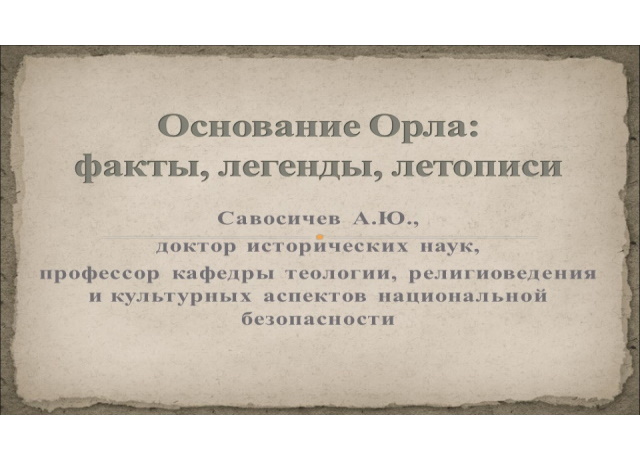 26 октября 2022 г. на кафедре теологии, религиоведения и культурных аспектов национальной безопасности состоялась интерактивная лекция А.Ю. Савосичева «Основание Орла: факты, легенды, летописи».