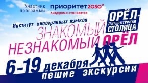 В рамках реализации мероприятий программы развития университета «Приоритет - 2030» по проекту «Орел – литературная столица» студенты групп 04 ЛНГ, О4 ПГОии вместе с преподавателем, доцентом кафедры немецкого языка, к.ф.н. Цукановой Е.М. приняли участие в пешеходной экскурсии «Знакомый незнакомый Орёл».