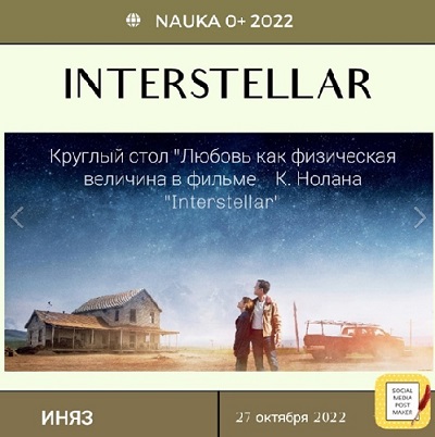 27 октября 2022 года в Институте иностранных языков состоялось очередное мероприятие в рамках Всероссийского фестиваля "Наука 0+". Круглый стол «Любовь как физическая величина в фильме К. Нолана «INTERSTELLAR» был организован для студентов ИИЯ, изучающих немецкий язык. В рамках мероприятия были показаны определенные сцены из фильма INTERSTELLAR на немецком языке, которые обсуждались в рамках затрагиваемой темы.