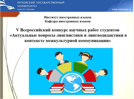 3 апреля 2025 года подведены итоги V Всероссийского конкурса научных работ студентов «Актуальные вопросы лингвистики и лингводидактики в контексте межкультурной коммуникации», который был организован преподавателями кафедры иностранных языков института иностранных языков ФГБОУ ВО «Орловский государственный университет имени И.С. Тургенева»