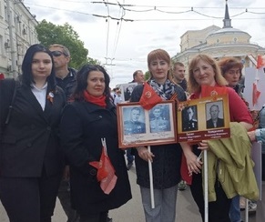 9 мая преподаватели и студенты в одном строю со своими героями - участниками Великой Отечественной Войны - прошли в колонне "Бессмертного полка".