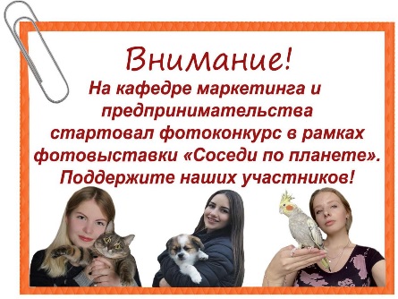 Кафедра проводит фотовыставку «Соседи по планете». В рамках данного мероприятия идет конкурс по четырем номинациям.