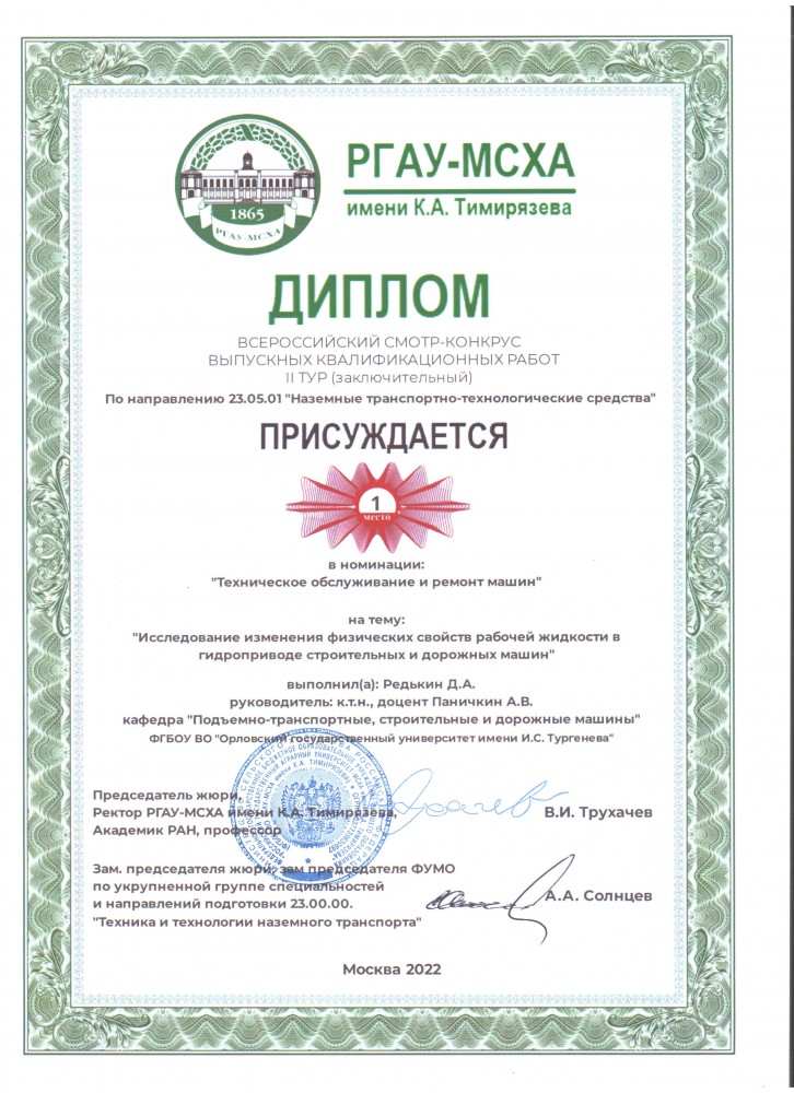 Всероссийский смотр конкурс выпускных квалификационных работ по направлению подготовки 23.05.01 Наземные транспортно-технологические средства