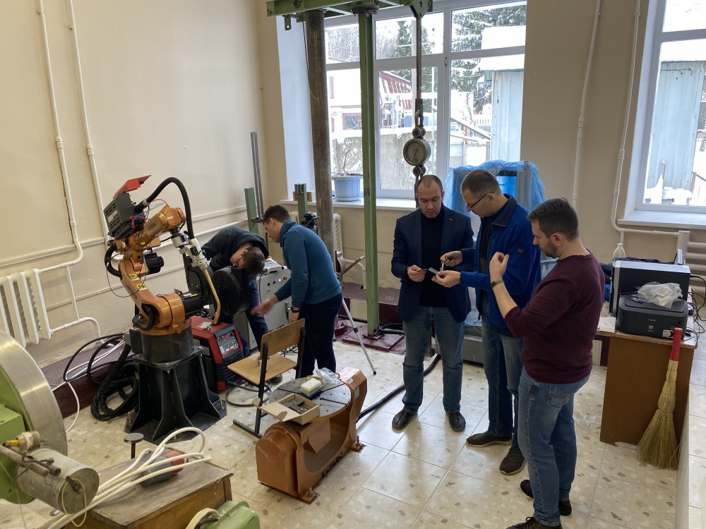 С 9 по 16 декабря сотрудники компании-поставщика ООО «СМД» провели монтажные, пуско-наладочные работы, а также обучение сотрудников кафедры. Оснащение робототехническим комплексом GSK RH06A3 вызвало интерес у индустриальных партнеров, и в один из дней в процесс обучения включился главный конструктор ООО «Огнедекор» Журавлёв В.И.