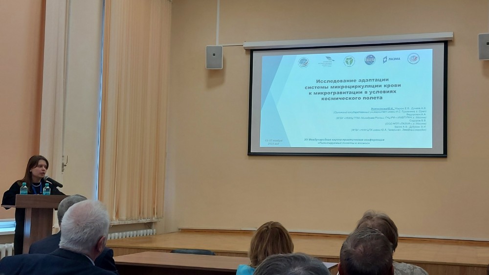 В секции «Медицинские и психологические аспекты отбора, подготовки, деятельности экипажей в космических полетах и послеполетной реабилитации» Юлия Локтионова представила результаты космического эксперимента «ЛАЗМА» в докладе «Исследование адаптации системы микроциркуляции крови к микрогравитации в условиях космического полета» (Локтионова Ю.И., Жарких Е.В., Дунаев А.В., Федорович А.А., Сидоров В.В., Васин А.В., Дубинин В.И.).