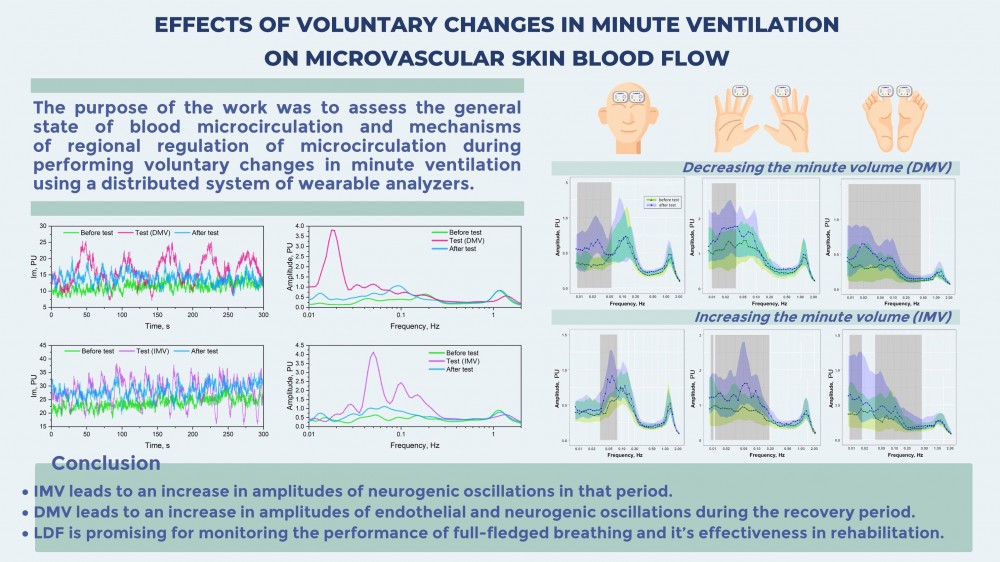 Обнаружено, что 5-минутные практики полного дыхания у опытных добровольцев приводят к аналогичным изменениям параметров микроциркуляции, а именно к увеличению кожной перфузии крови во всех областях, а также увеличению питательного (нутритивного) кровотока только в конечностях (пальцах рук и ног). Уменьшение минутного объема дыхания приводит к увеличению амплитуд эндотелиальных и нейрогенных колебаний в период восстановления, но увеличение минутного объема дыхания приводит к увеличению амплитуд нейрогенных колебаний в течение того же периода.