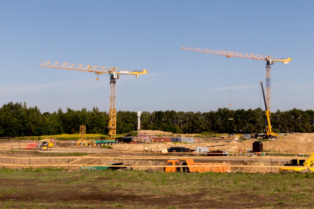 На двух общежитиях выполнены работы по подготовке бетонного основания и его гидроизоляция. Идет подготовка к монолитным работам. Произведен монтаж двух из пяти планируемых башенных кранов.
