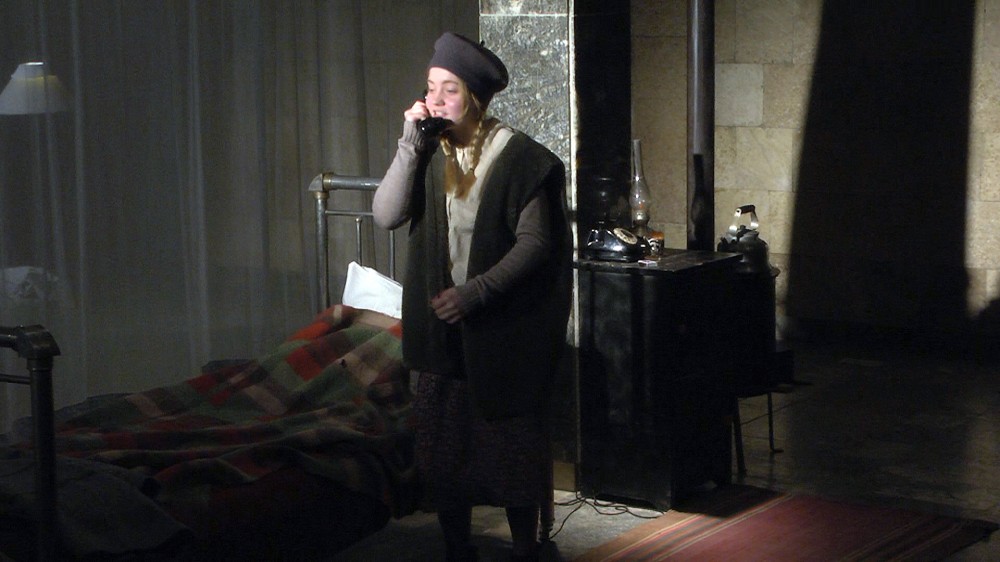 Постановка длиной в час, за который зритель успевает ощутить весь спектр эмоций: таинственность происходящего, любовь к Родине, сострадание к героине и, конечно же, гордость за подвиг русского народа. Зал разделен летящим и полупрозрачным занавесом на два сектора, в каждом из них разворачивается свое действо, а связующей нитью сюжета становятся мультимедийные вставки и общение по телефону. Таким образом, один случайный звонок соединяет век прошлый и нынешний, заставляя сюжет спектакля принять фантастический оборот.