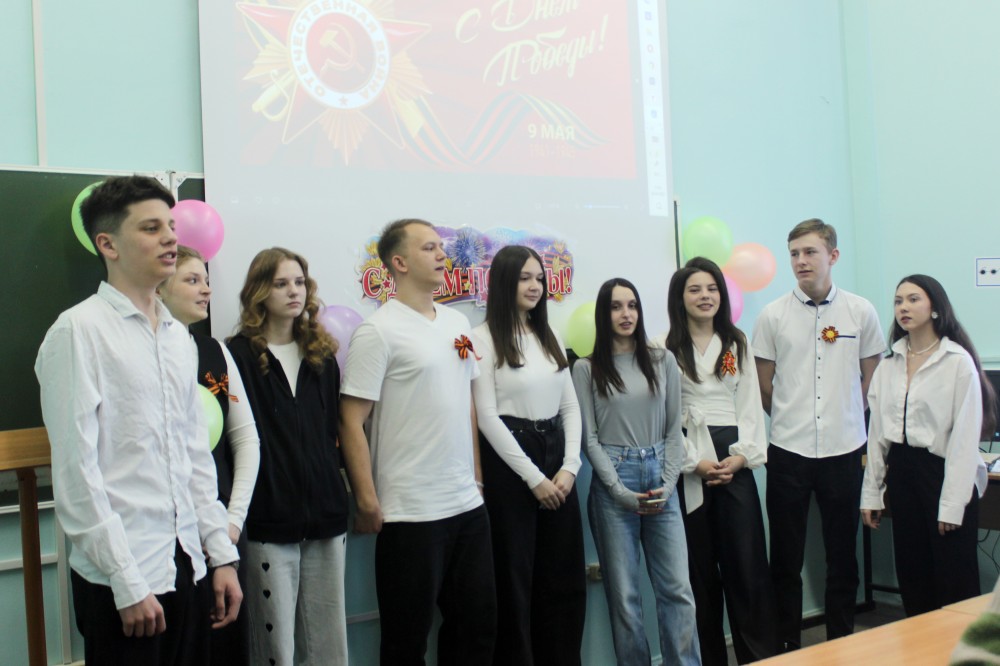 Завершила концерт песня «День Победы» в исполнении студентов группы 41 М. Песня никого не оставила равнодушной и в итоге к исполнению песни присоединились все зрители.