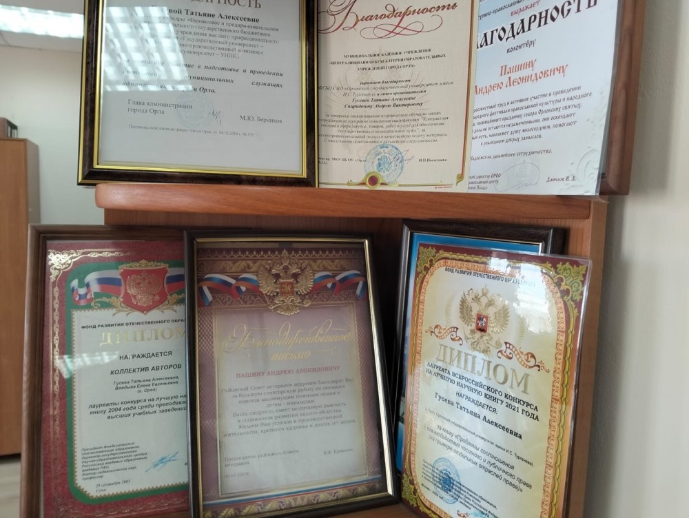 – дипломы и благодарности от бизнес- структур, органов власти за проведение курсов повышения квалификации по контрактной системе.
