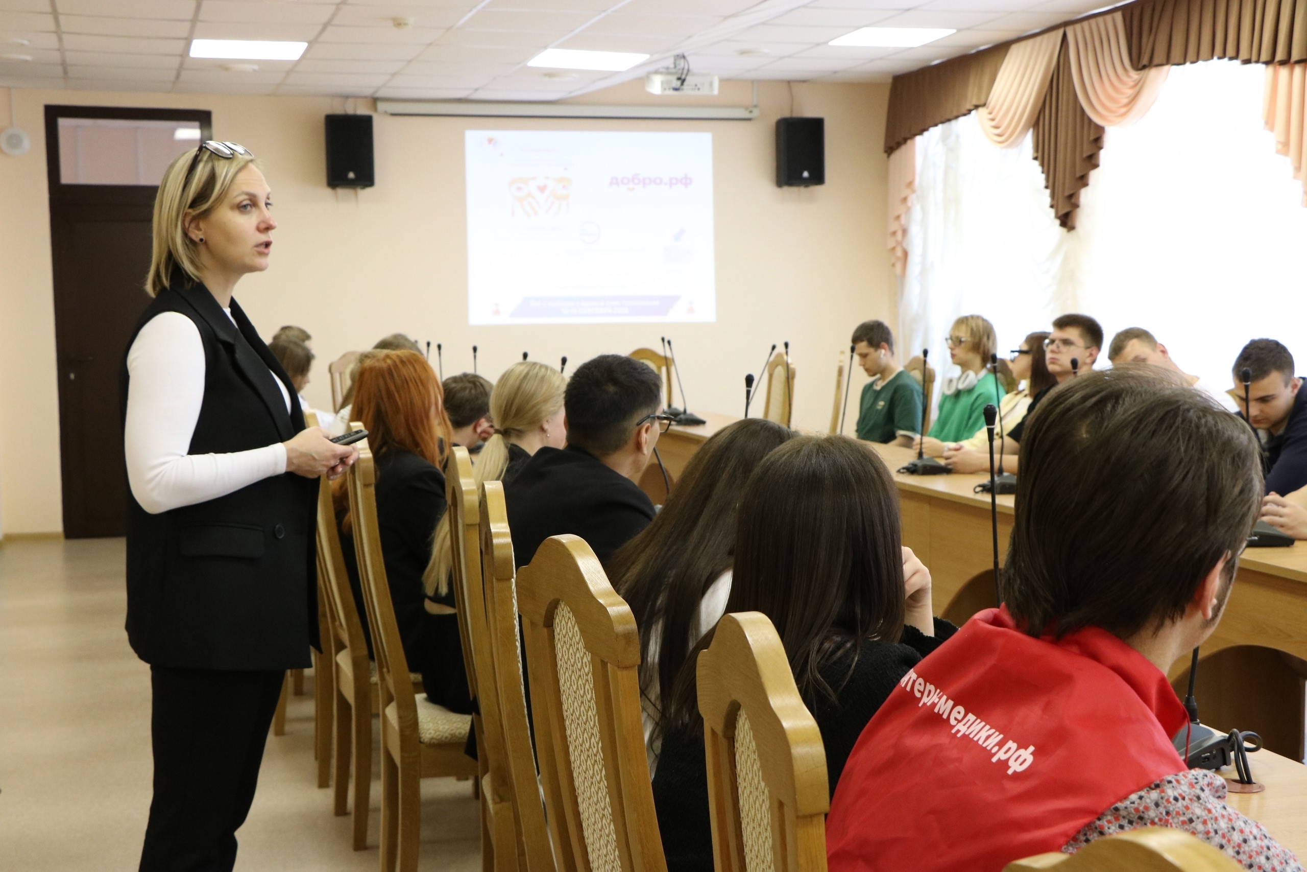 О выборах депутатов Орловского городского Совета народных депутатов седьмого созыва, помощи волонтеров на избирательных участках города Орла со студентами вуза беседовала заместитель председателя облизбиркома Светлана Гонтарь.