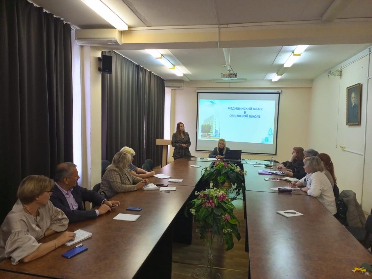 На встрече выступили директор Медицинского института Ирина Снимщикова, директор Ресурсного центра профориентационной работы Виталий Терехов, ответственная за воспитательную и профориентационную работу Медицинского института Лилия Королёва, которые представили обновленный формат проекта «Медицинский класс в Орловской школе».