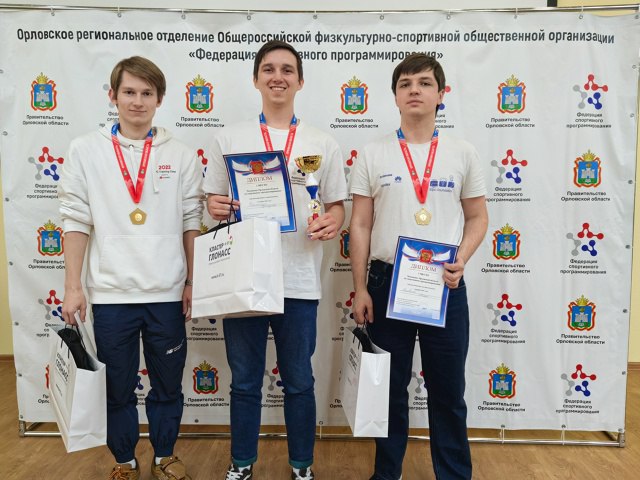 - Ребята, поздравляем вас с победой в Чемпионате Орловской области по спортивному программированию в дисциплине «алгоритмическое программирование». Аркадий, это же не первый чемпионат для вашей команды? Учитывая ваш опыт, в этот раз победа была ожидаема?