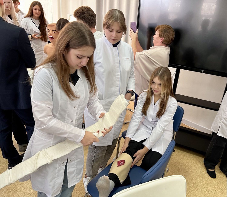 После торжественной части участники погрузились в мир практической медицины и приняли участие в мастер-классах насыщенной интерактивной программы «Профессиональный калейдоскоп». Ребята попробовали себя в роли настоящих врачей: надели белые халаты и с помощью оборудовании Акредитационно-симуляционного центра делали уколы, оказывали первую помощь, останавливали кровотечения, накладывали повязки и шины, осматривали новорожденных и консультировали как стоматологи. Интерактивная секция, организованная студентами Медицинского института под руководством куратора проекта «Медицинский класс в Орловской школе» Лилии Королёвой вызвала большой интерес, как у школьников, так и у их родителей и гостей мероприятия.