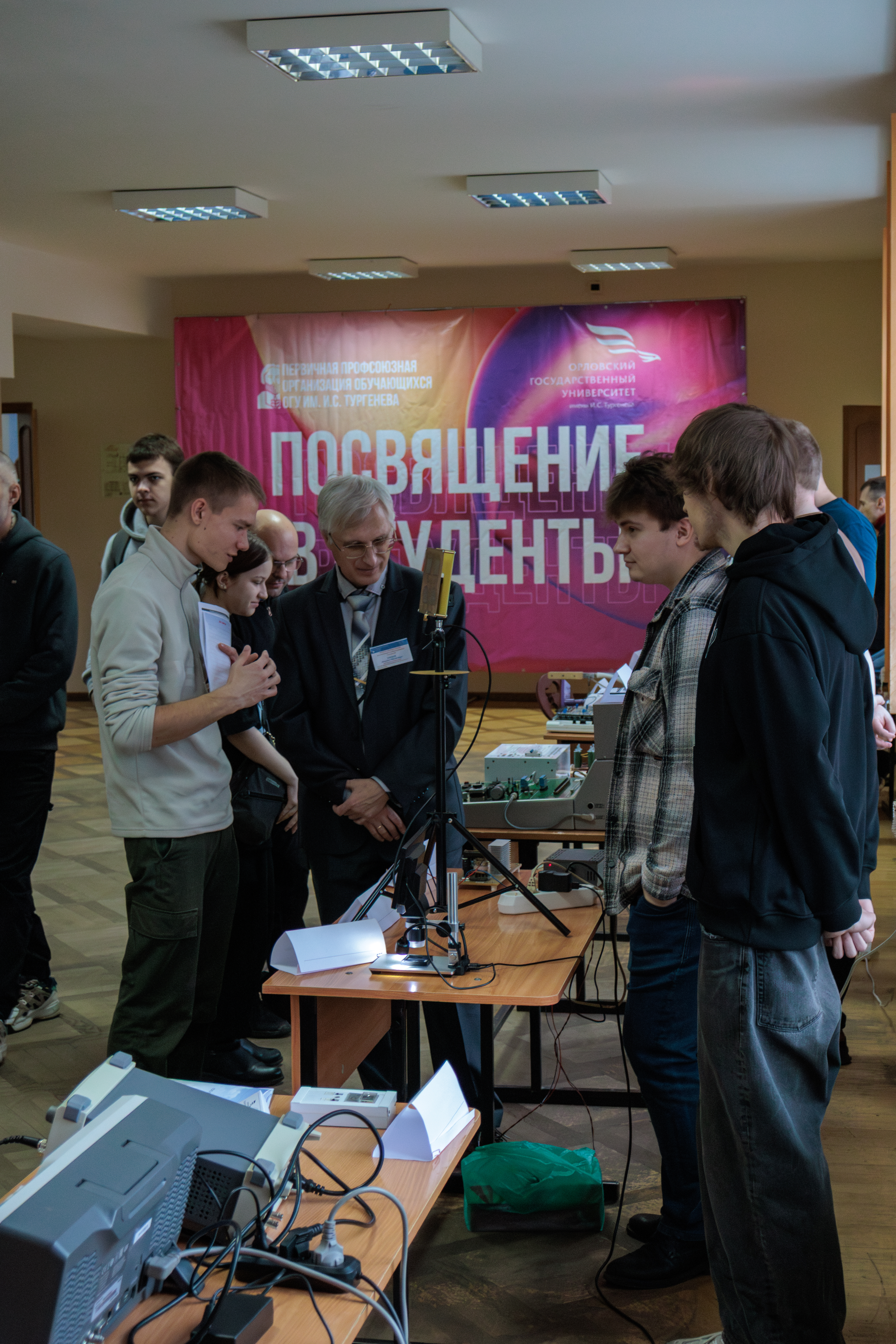 В фойе актового зала абитуриентов и их родителей ждала выставка студенческих разработок и проектов, где можно было пообщаться со студентами и узнать не только о самих разработках, но и об особенностях студенческой жизни в нашем вузе и на кафедрах. Гостей приветствовал Маскот Спортивного клуба ОГУ им. И.С. Тургенева орёл Лори. На выставке студенческих разработок ИПАИТ были представлены студенческие проекты в области электроники, радиотехники, систем связи, медицинского приборостроения, автоматизированных систем управления и кибернетики.