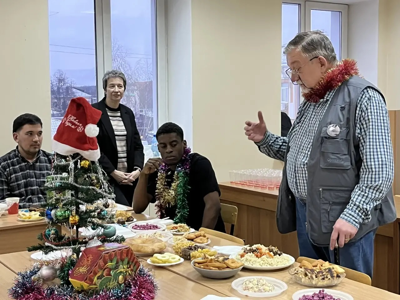 На встрече собрались иностранные и русскоговорящие студенты 1–4 курсов, чтобы поделиться своими традициями и кулинарными блюдами. Студенты представили на празднике много праздничных блюд: здесь был и традиционный оливье, и плов, и экзотические национальные сладости. Иностранные студенты с гордостью рассказывали о том, как отмечают Новый год в их странах, представляли свои национальные блюда.