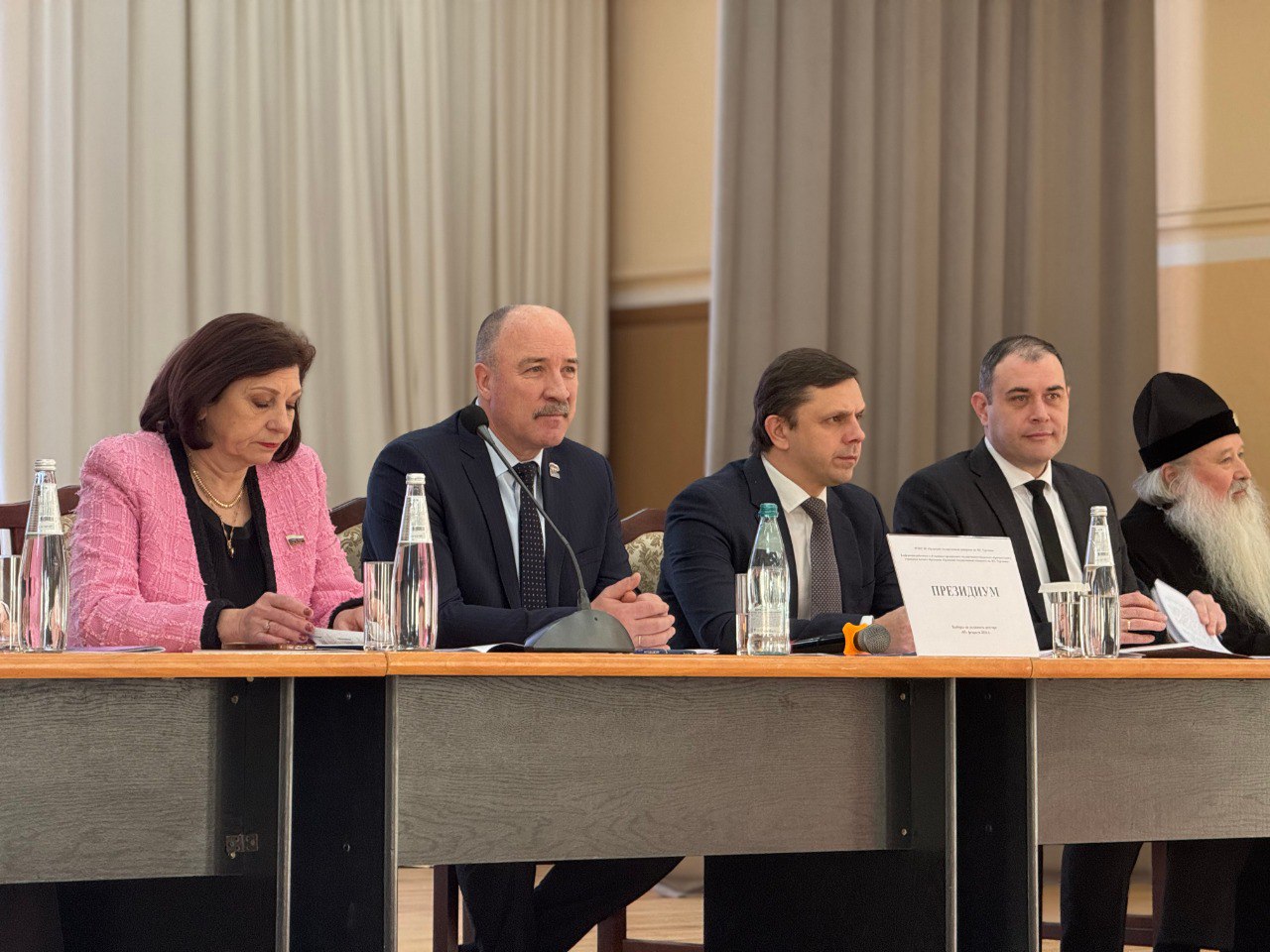 В президиум конференции вошли Губернатор Орловской области Андрей Клычков, Председатель Орловского областного Совета народных депутатов Леонид Музалевский, депутат Государственной Думы Федерального Собрания РФ Ольга Пилипенко, главный федеральный инспектор по Орловской области аппарата полномочного представителя Президента Российской Федерации в ЦФО Эдуард Голованев, митрополит Орловский и Болховский Тихон, научный руководитель ОГУ имени И.С. Тургенева Вячеслав Голенков, и.о. первого проректора по образовательной деятельности Оксана Леонова.