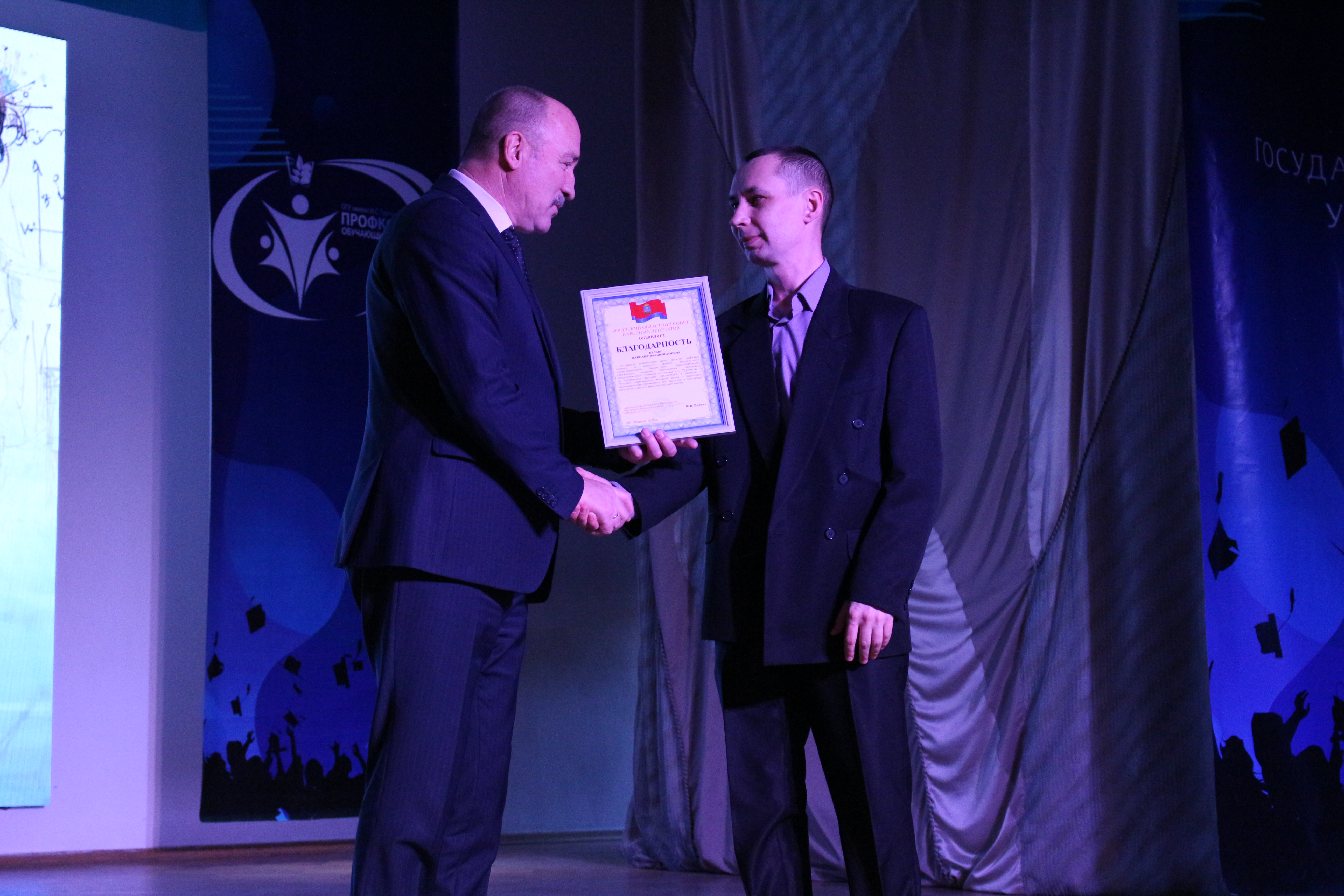 В рамках церемонии были вручены почётные грамоты и благодарности от Орловского областного Совета народных депутатов, Департамента образования, администрации города Орла и Орловского государственного университета имени И.С. Тургенева.