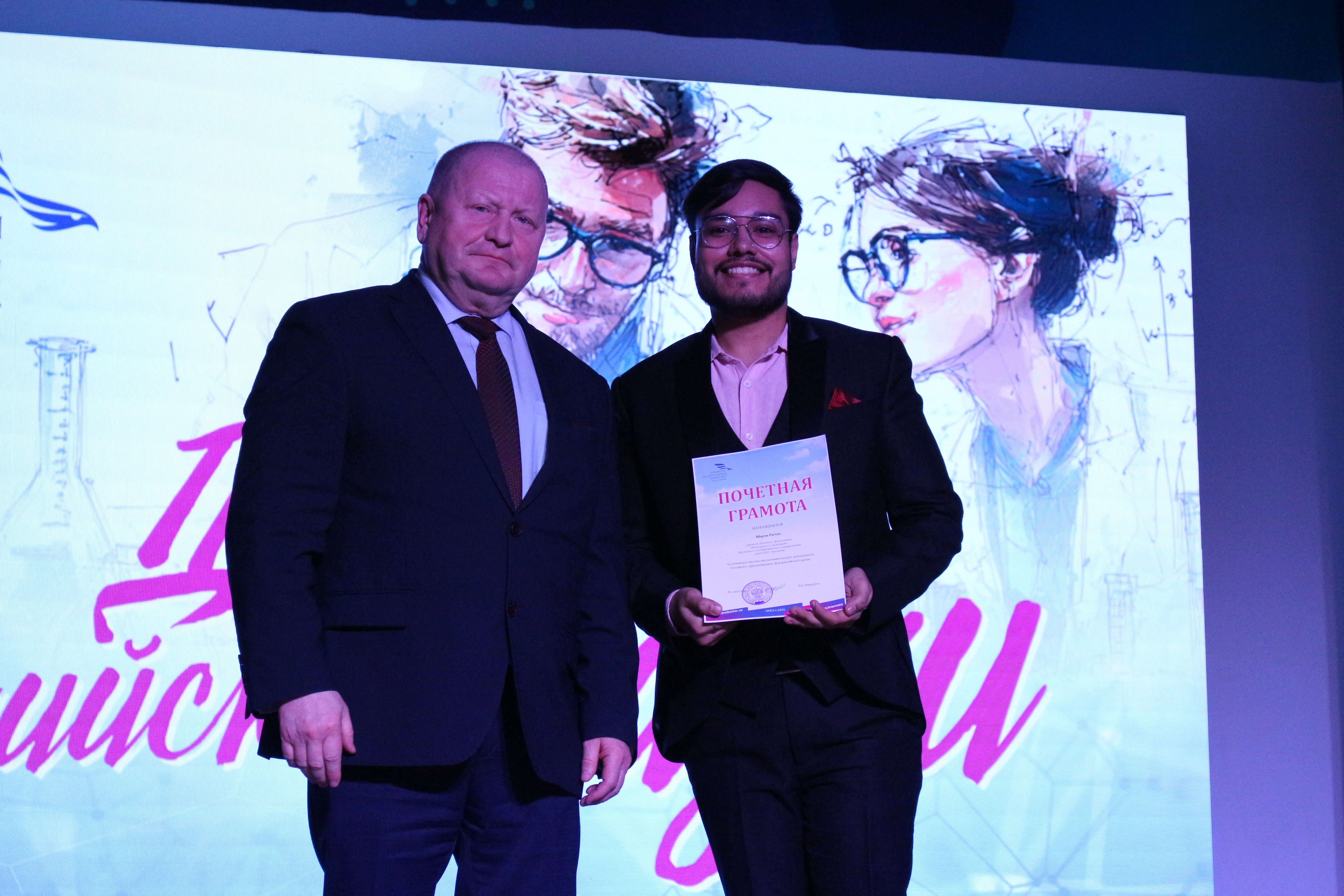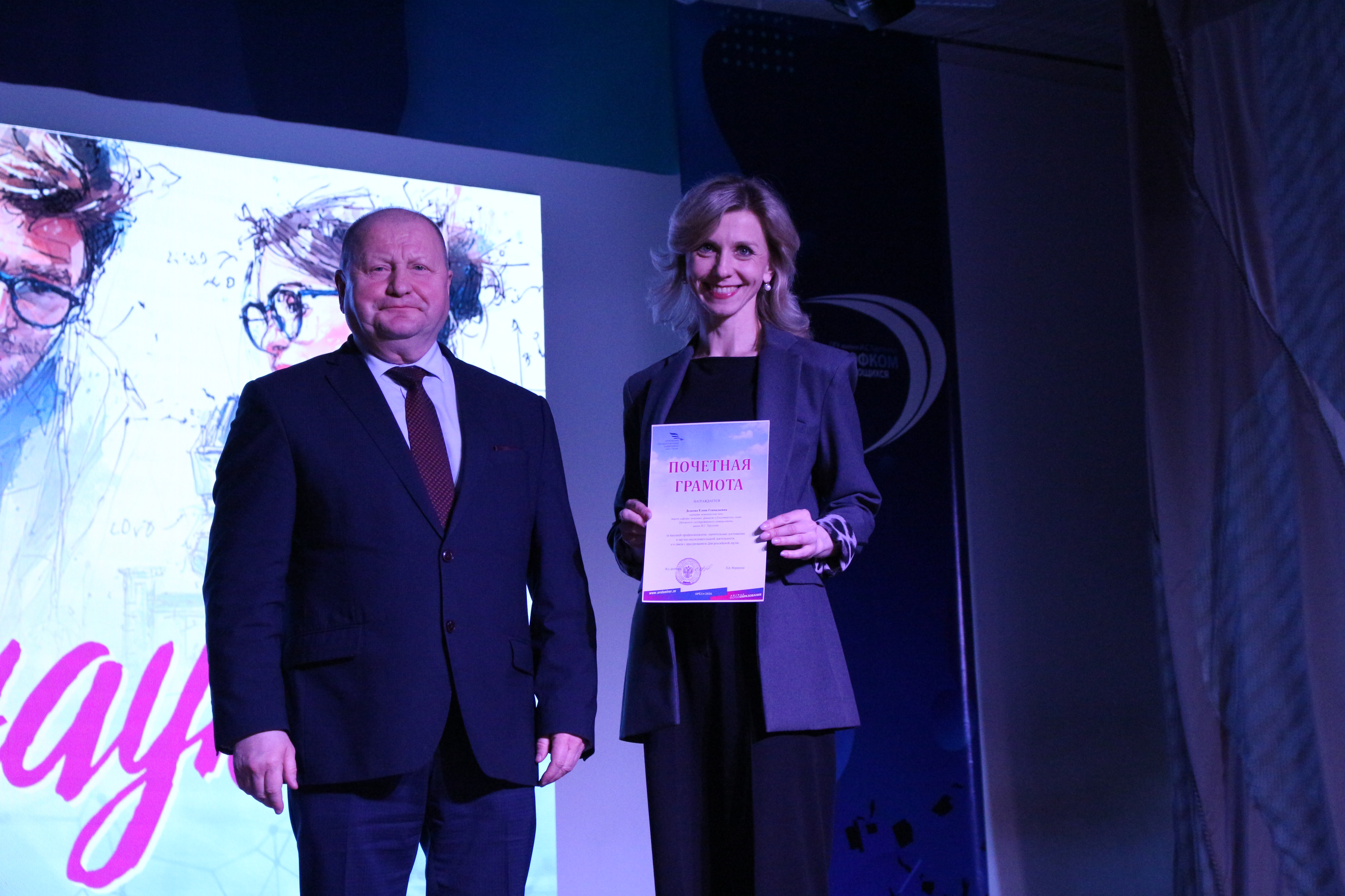 На торжественной церемонии были вручены почётные грамоты и благодарности от Орловского областного Совета народных депутатов, Департамента образования, администрации города Орла и Орловского государственного университета имени И.С. Тургенева. Эти награды стали признанием весомого вклада в науку и инновационной деятельности награждённых.