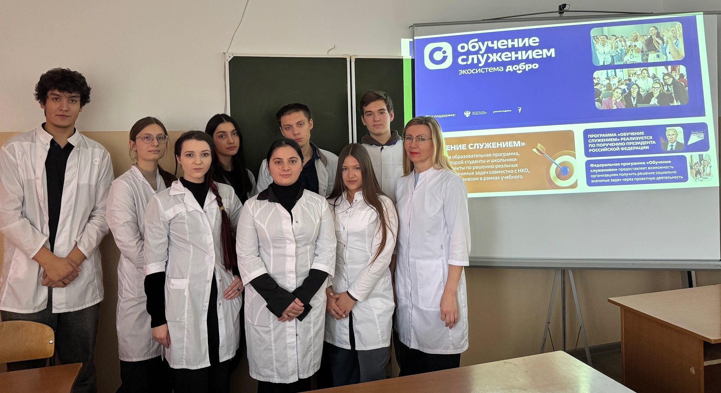 Федеральная программа «Обучение служением» инициирована во исполнение поручений Президента Российской Федерации, опубликованных по итогам заседания Государственного Совета 2022 года, Министерством науки и высшего образования Российской Федерации совместно с Ассоциацией волонтёрских центров. В настоящее время Федеральная программа «Обучение служением» входит в концепцию национального проекта «Молодёжь и дети».