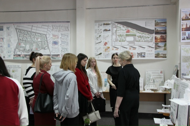 Были оформлены авторские фотозоны, а в выставочном зале развернулась настоящая галерея: курсовые и дипломные проекты, которые в обычной жизни нигде не увидишь. Рядом с макетами стояли авторы работ и преподаватели, можно было подойти и в неформальной обстановке задать любой вопрос.