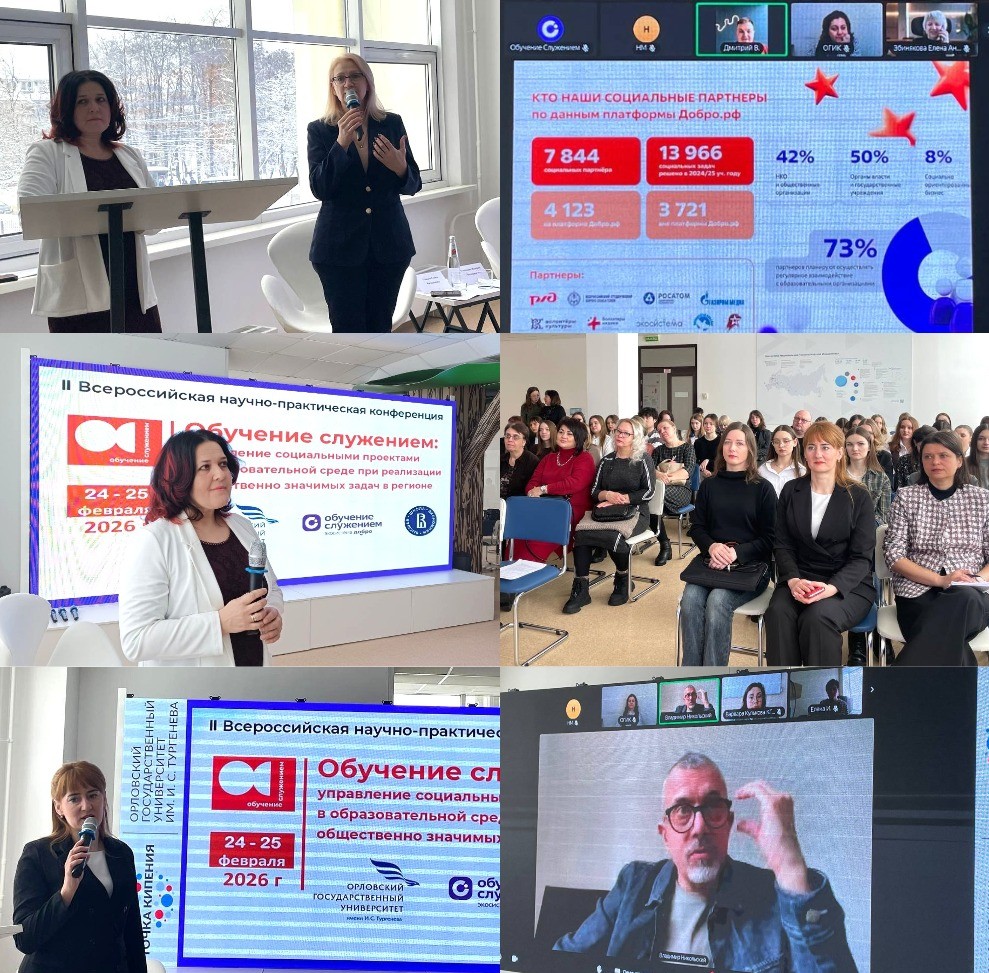 24 февраля 2026 года в Центре коллективной работы «Точка кипения ОГУ им. И.С.Тургенева» состоялось пленарное заседание II Всероссийской научно-практической конференции «Обучение служением: управление социальными проектами в образовательной среде при реализации общественно значимых задач в регионе».