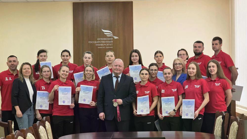 И.о. ректора ОГУ имени И.С. Тургенева Павел Меркулов поздравил ЖФК «ОрёлГУ-КПРФ» с серебром Кубка России