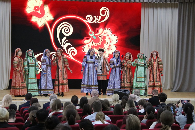 Зажигательное исполнение танцевальных номеров под русские народные песни и выступление ансамбля барабанщиков никого не оставило равнодушным, зрители тепло встречали каждый номер, поддерживая артистов аплодисментами. В завершении все участники концерта и руководство вуза поднялись на сцену и еще раз поздравили женщин с праздником весны — 8 марта!