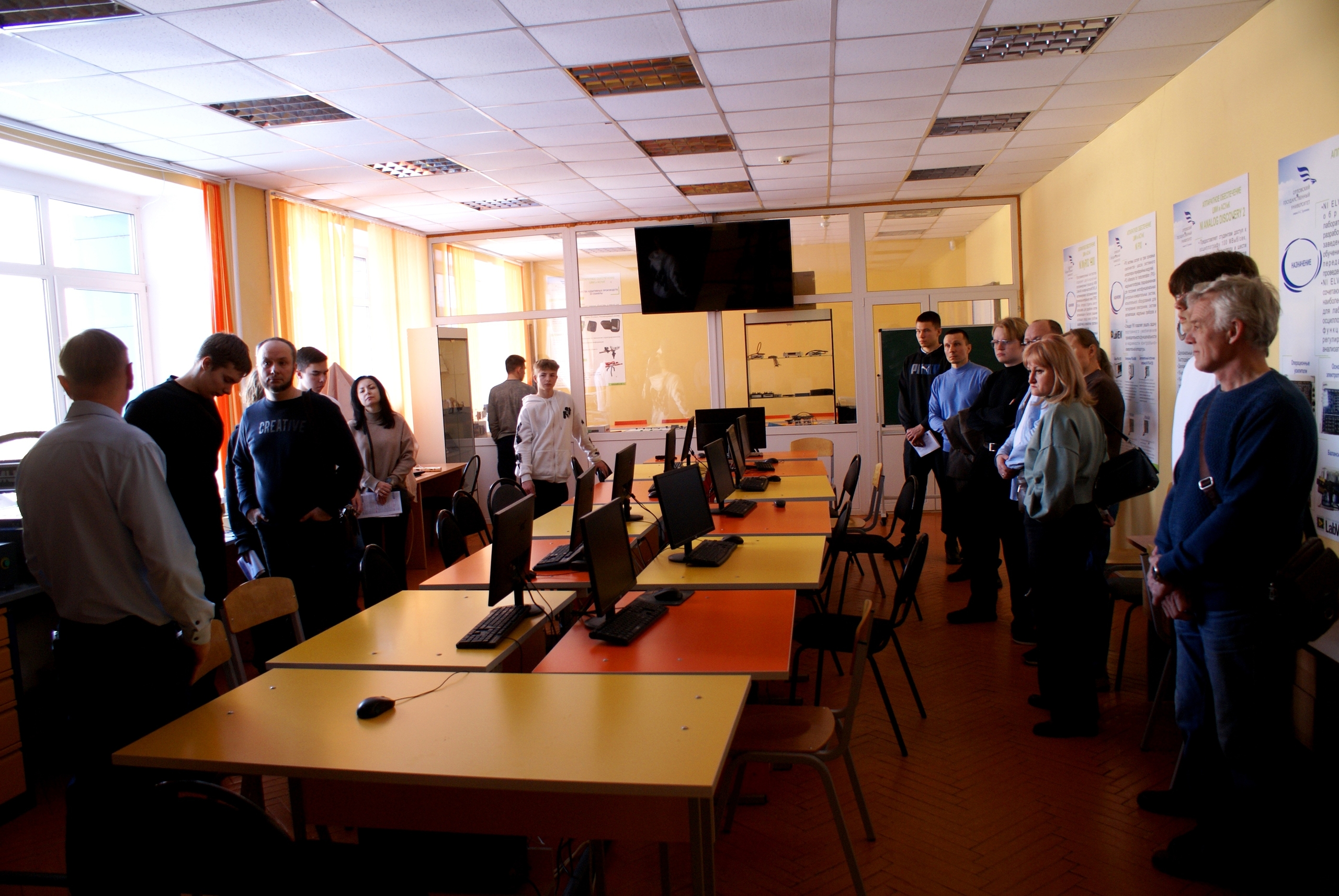 После официальной части будущих абитуриентов и их родителей пригласили на экскурсии. Преподавателями института приборостроения, автоматизации и информационных технологий были проведены экскурсии в НТЦ биомедицинской фотоники ОГУ имени И.С. Тургенева, по лабораториям кафедры электрооборудования и энергосбережения, кафедры автоматизированных систем управления и кибернетики. Политехнический институт имени Н.Н. Поликарпова пригласил всех желающих в лаборатории кафедры машиноведения, мехатроники и робототехники, а факультет физической культуры и спорта познакомил молодое поколение с преподавателями факультета, особенностями поступления на направления подготовки факультета физической культуры и спорта и спортивными объектами ОГУ им. И.С. Тургенева.