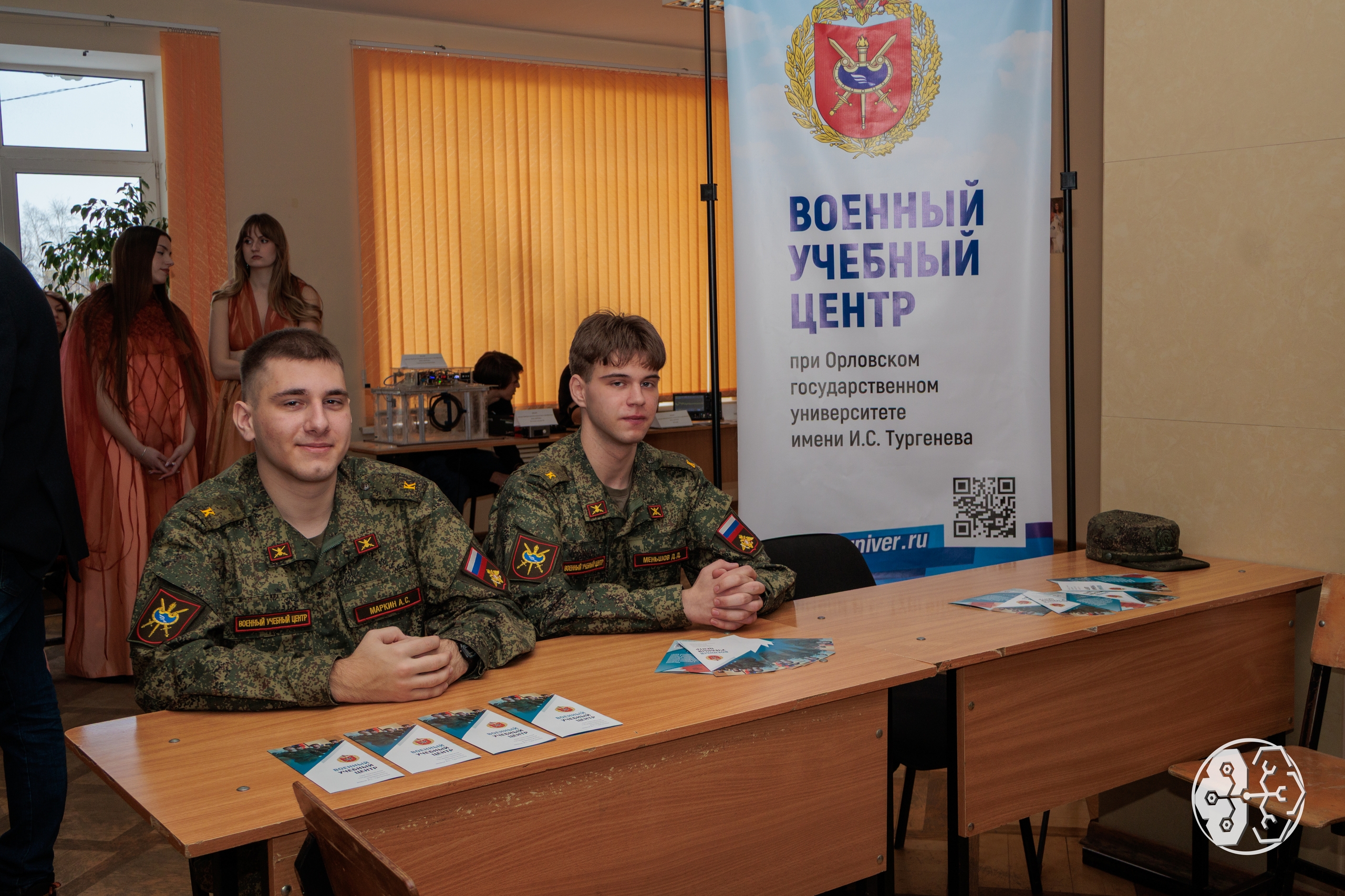 Также в фойе актового зала абитуриентов консультировали студенты-курсанты Военного учебного центра ОГУ им. И.С. Тургенева, а встречал и провожал гостей маскот спортивного клуба ОГУ им. И.С. Тургенева орёл Лори.
