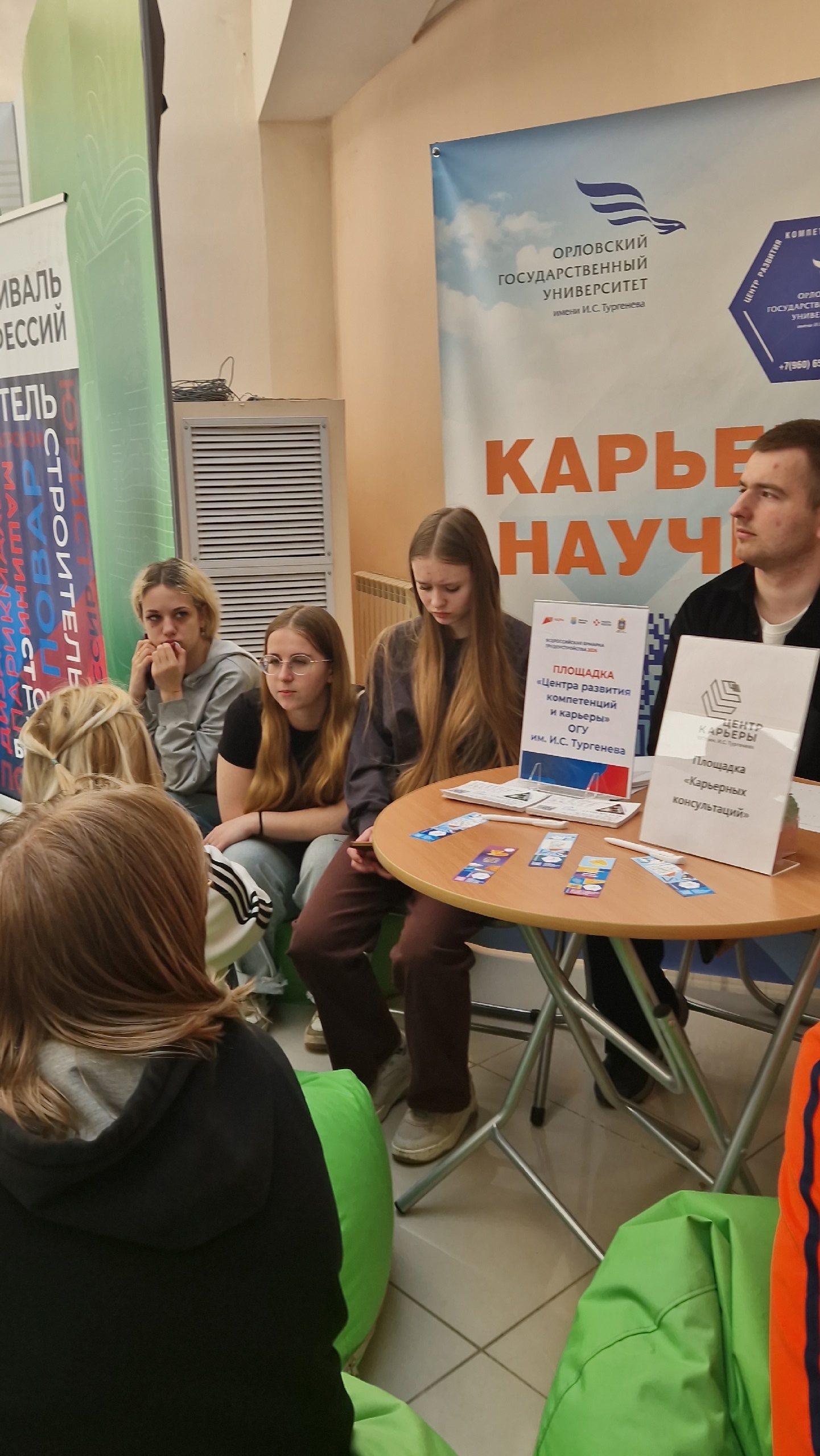 На площадке Центра карьеры ОГУ им. И.С. Тургенева оказывалась всесторонняя поддержка: групповые и персональные карьерные консультации для студентов, находящихся в зоне риска нетрудоустройства, участников университетской программы Центра карьеры «Быстрый поиск работы», а также личное сопровождение кандидатов на экспресс-собеседованиях у кадровых партнёров вуза.