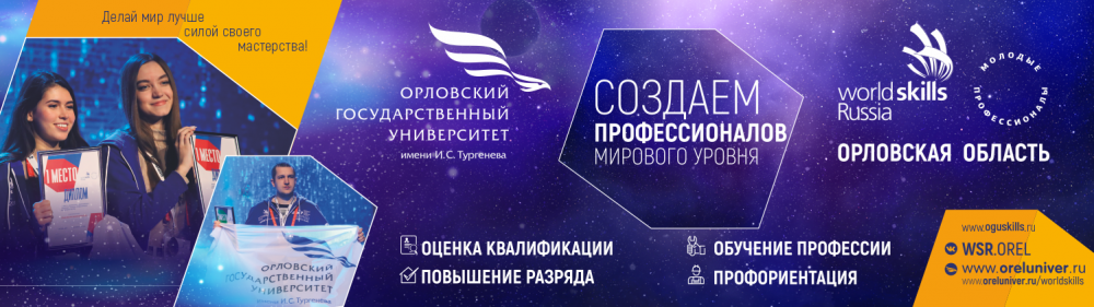 С 21 по 25 сентября в опорном университете пройдет IV Вузовский отборочный чемпионат «Молодые профессионалы» (WorldSkills Russia) ОГУ имени И.С. Тургенева – OGUSkills2020