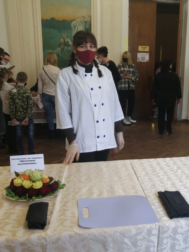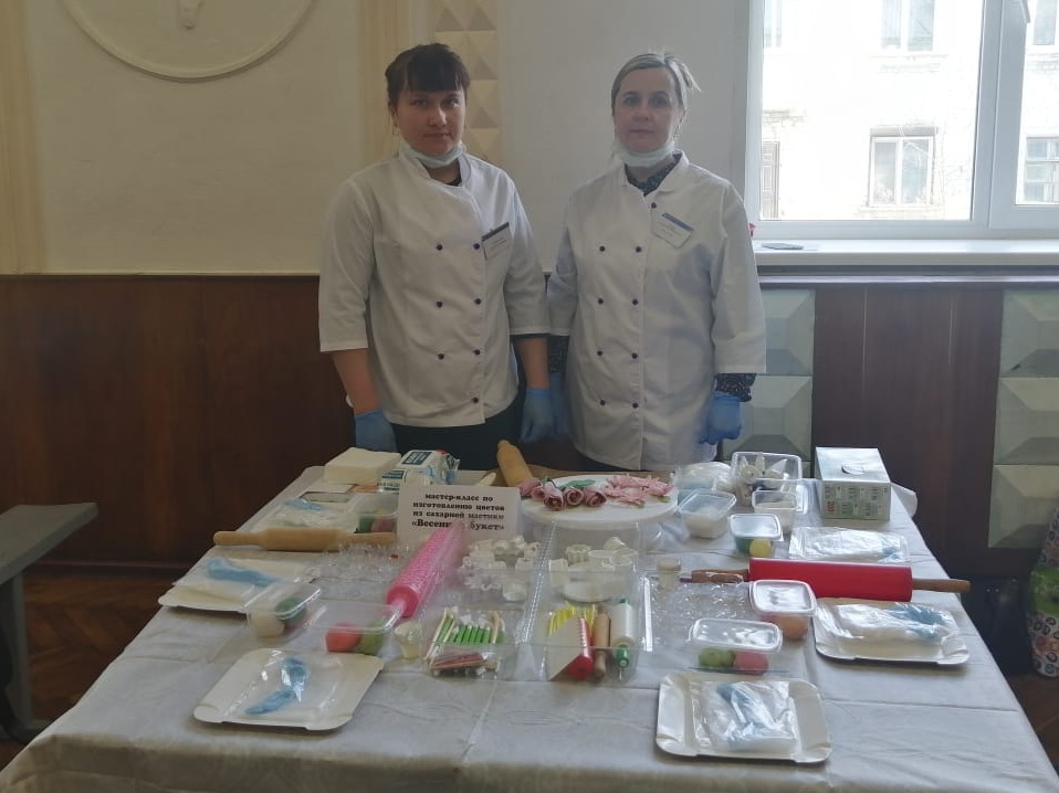 В рамках мероприятия был представлен мастер-класс по изготовлению цветов из сахарной мастики «Весенний букет», который провели к.т.н., доцент Демина Е.Н. и студентка группы 91-ПЖ-м Багрова Д.А. (направление подготовки 19.04.03 Продукты питания животного происхождения). Второй мастер-класс по карвингу «Цветочное вдохновение» был организован к.т.н., доцентом Глебовой Н.В. с участием студентов направления 19.03.04 Технология продукции и организация общественного питания – Кононенко Т.С., группа 71-ТП и Домородова А.А. группа 81-ТП.