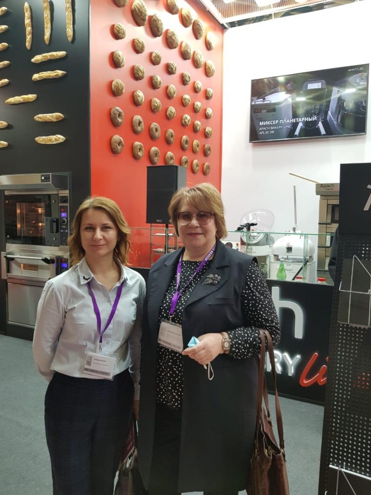 Выставка Modern Bakery Moscow является одним из самых значимых и востребованных деловых событий хлебопекарной и кондитерской промышленности и, безусловно, ведущей выставкой данной тематики в России и странах ближнего зарубежья. Преподаватели нашей кафедры (ТППиОРД): д.т.н., Румянцева Валентина Владимировна и к.т.н., Хмелева Евгения Викторовна посетили выставку, в том числе, изучили представленное оборудование, сырье, добавки и мастер-классы для хлебопекарного и кондитерского производств.