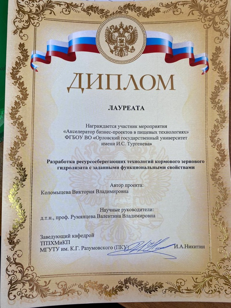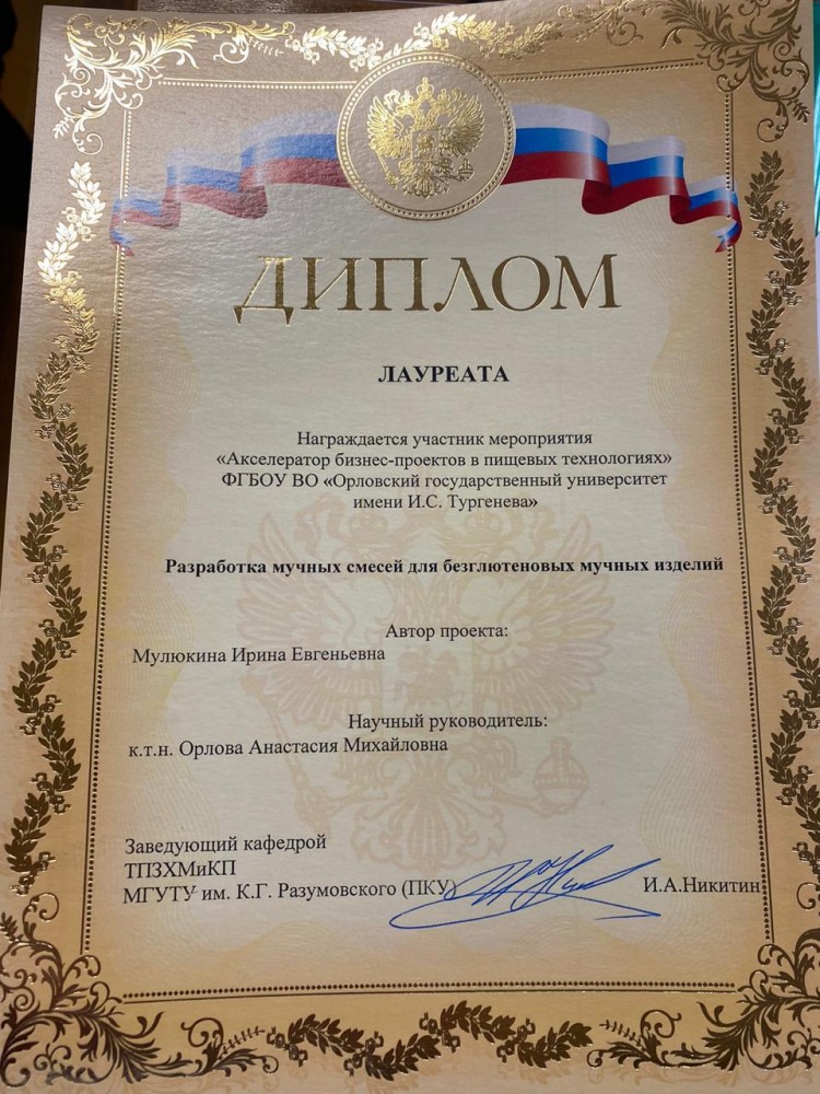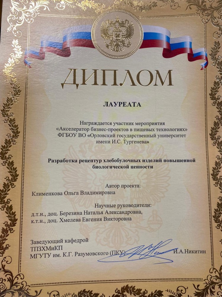 В рамках Международной специализированной выставки для хлебопекарного и кондитерского рынков Modern Bakery Moscow 2021 проходил Акселератор бизнес-проектов в пищевых технологиях (МГУТУ им. К.Г. Разумовского (ПКУ)) в котором приняли участие студенты кафедры направления подготовки Продукты питания из растительного сырья - Клименкова О.В. (4 курс), Мулюкина И.Е. (4 курс) и Коломыцева В.В. (2 курс, магистратура). Девочки достойно выступили со своими бизнес-проектами (научными разработками)