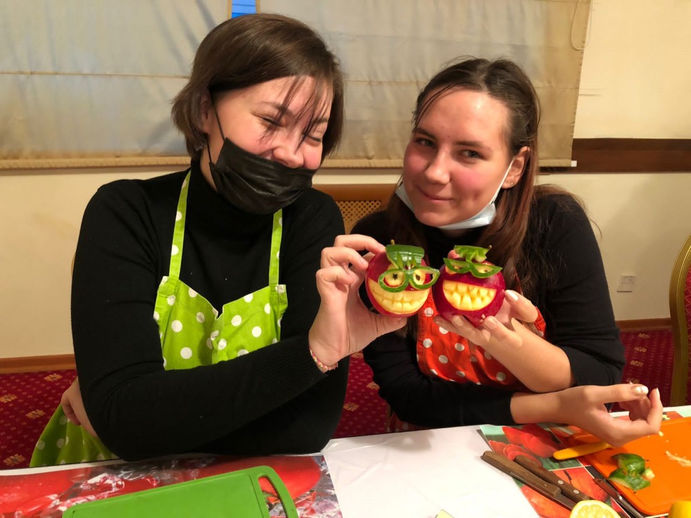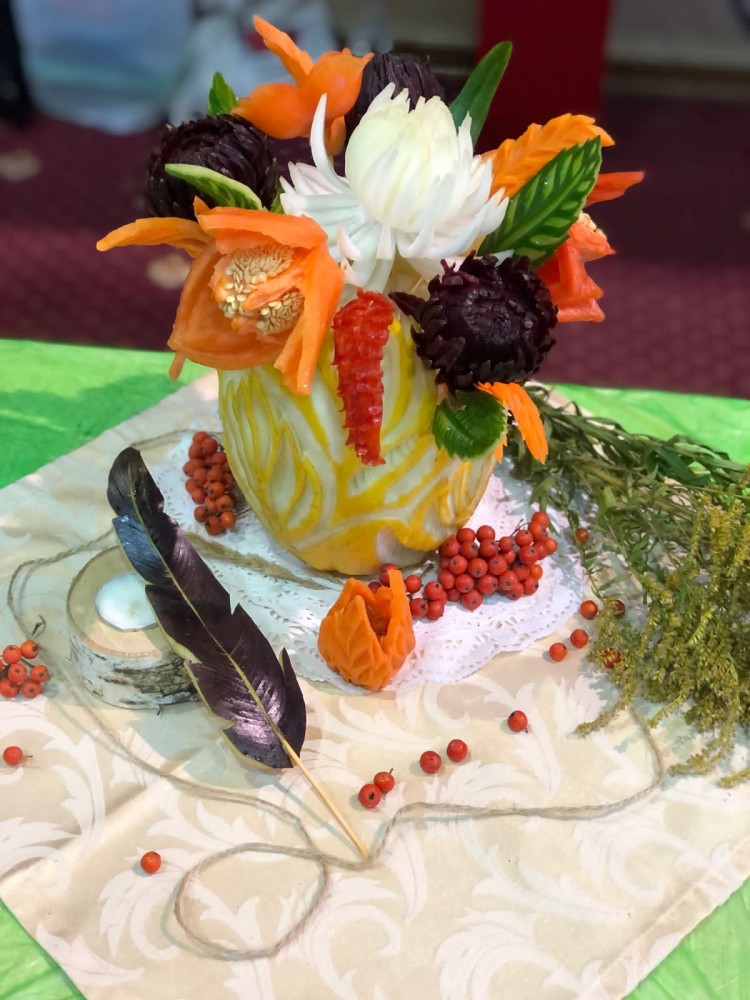 Кроме этого наши студенты Домородова А., Лукошкина С. и Чукин Н. стали участниками мастер-класс по карвингу от ведущего специалиста Олега Белова, в рамках которого он рассказал о секретах мастерства превращения овощей и фруктов в настоящие произведения искусства.